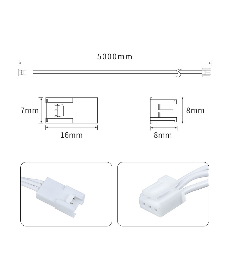 Câble de rallonge blanc de 5 m pour notre kit de bandes LED COB pour escaliers.