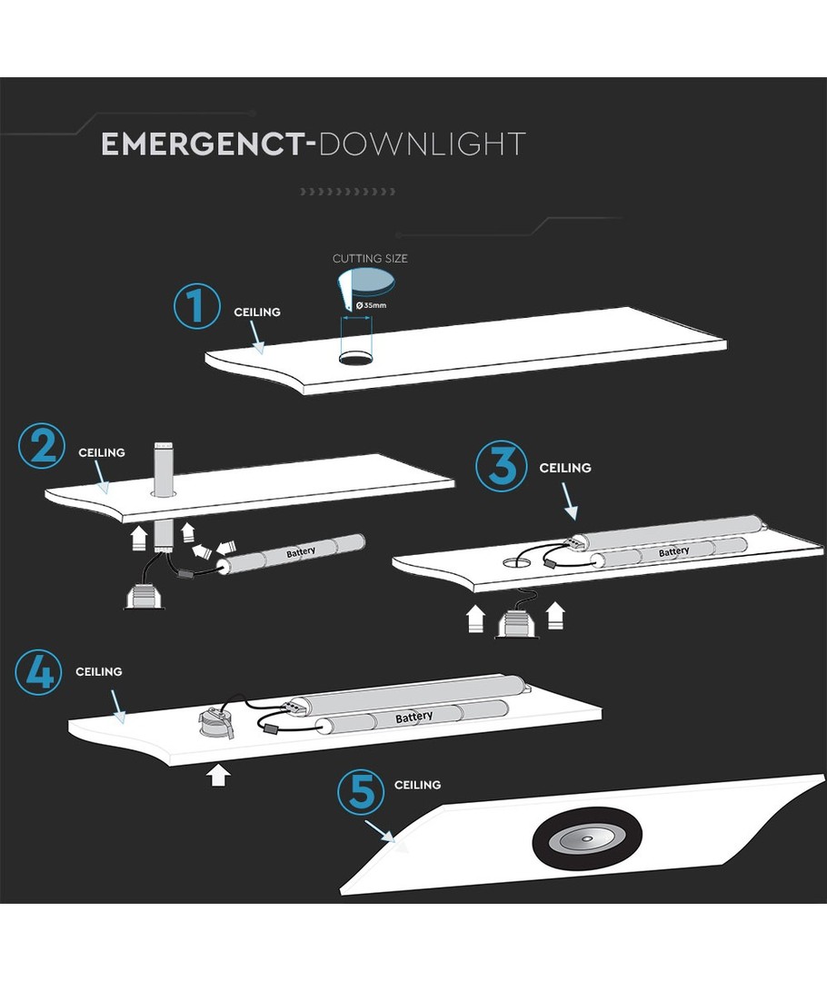 Downlight de secours 3W - 5500K est une solution efficace pour un éclairage de sécurité en cas de panne de courant.