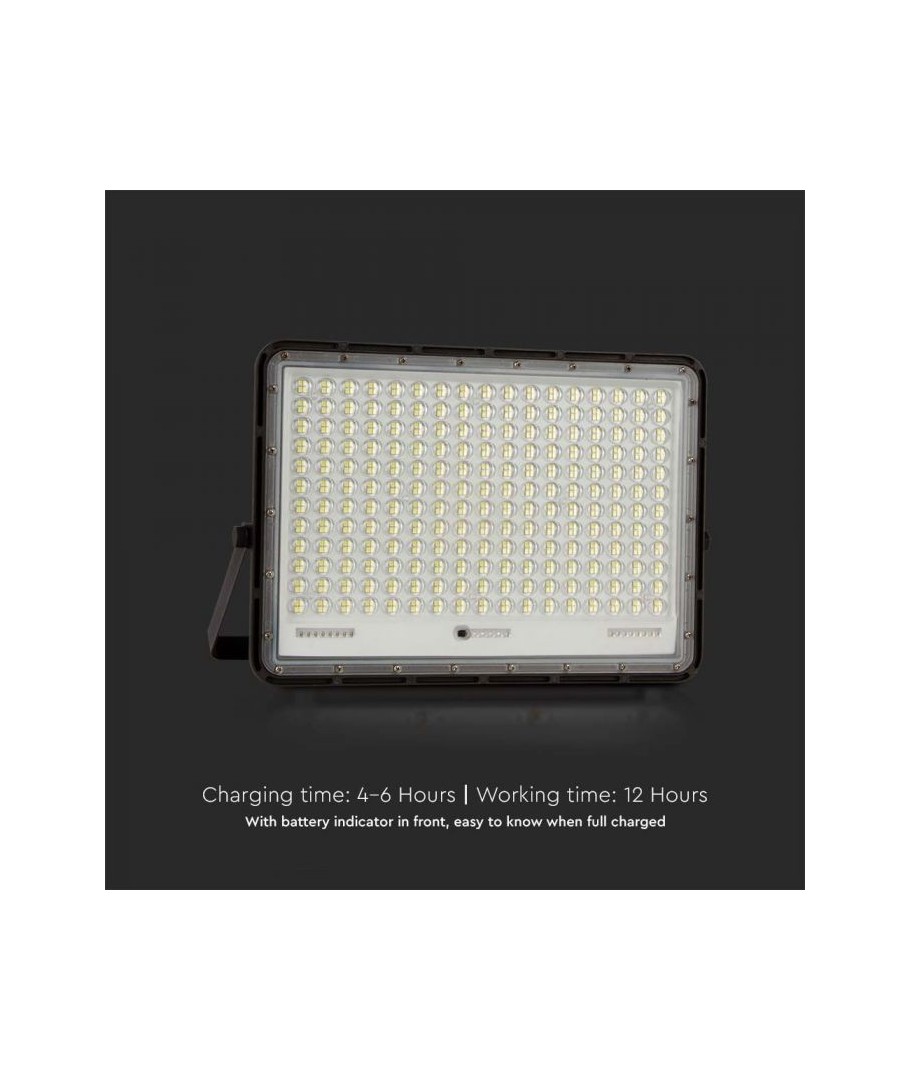 Projecteur solaire LED V-Tac 30W - Noir, une solution pratique et économe en énergie pour l'éclairage extérieur. Ce projecteur comprend un panneau solaire et une télécommande, et est conçu pour résister à toutes les conditions météorologiques grâce à sa classification IP65. Il dispose également d'une fonction minuterie pratique qui vous permet de le programmer pour qu'il s'éteigne automatiquement après une certaine période. Avec un temps de charge complet de seulement 4 à 6 heures, ce projecteur peut fournir 12 heures de lumière. Il est également livré avec un câble de 3 mètres, vous offrant la flexibilité de le placer où vous en avez besoin.