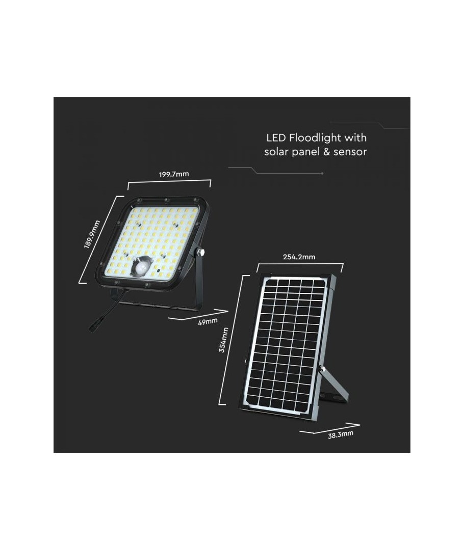 Projecteur LED solaire V-Tac 30W - Noir, une solution pratique et écoénergétique pour l'éclairage extérieur. Ce projecteur comprend un panneau solaire et une télécommande, et est conçu pour résister à toutes les conditions météorologiques grâce à sa classification IP65. Il dispose également d'une fonction minuterie pratique qui vous permet de le programmer pour qu'il s'éteigne automatiquement après une certaine période. Avec un temps de charge complet de seulement 4 à 6 heures, ce projecteur peut fournir 60 heures de lumière. Il est également livré avec un câble, vous offrant la flexibilité de le placer où vous en avez besoin.