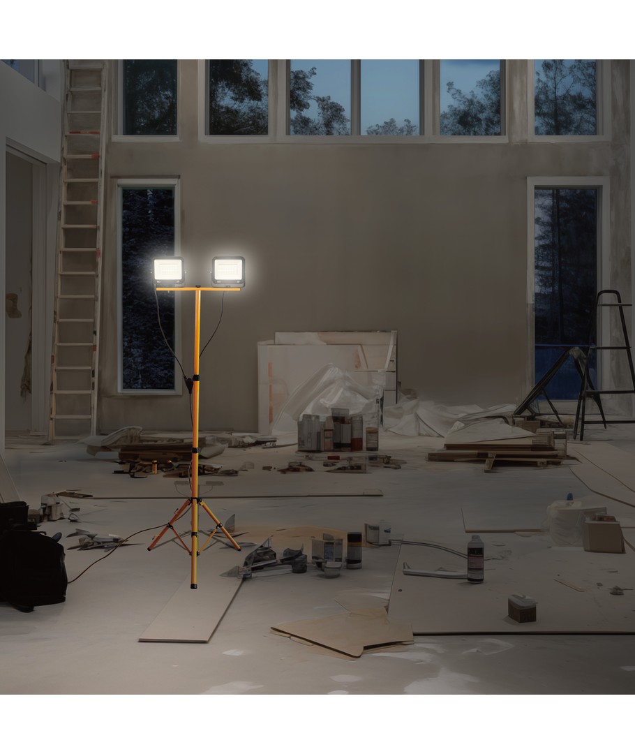 Avec une luminosité de 8300 lumens et un angle de diffusion impressionnant de 110°, ce trépied garantit une répartition uniforme et large de la lumière, ce qui le rend idéal tant pour le lieu de travail que pour les projets en extérieur. La couleur de lumière blanc neutre assure un éclairage naturel sans tons bleus ou jaunes gênants.