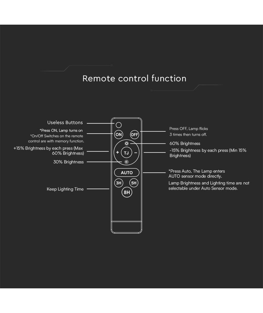 | Remarques supplémentaires | Wire length: 5m. Battery: 6.4V, 6000mAh LiFePO4 Battery. Charging time: 4-6 Hours Sunlight Charging. Working time: Max.60 Hours. Sensor type: PIR. Sensor distance: |