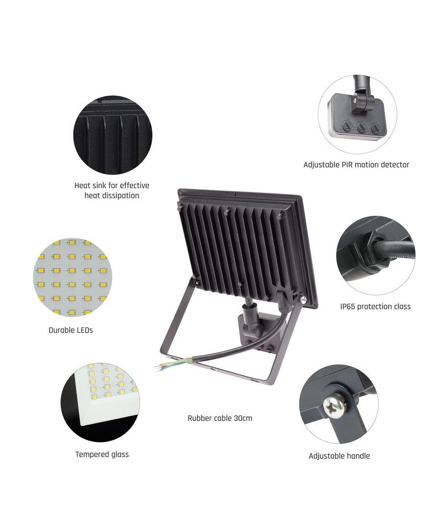 IP44, noir, lampe de travail, capteur PIR