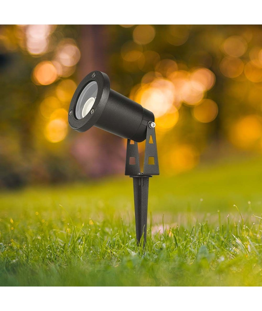 Facile à assembler, il suffit de placer la tige dans le sol et de la connecter à 230V à l'aide de câbles.