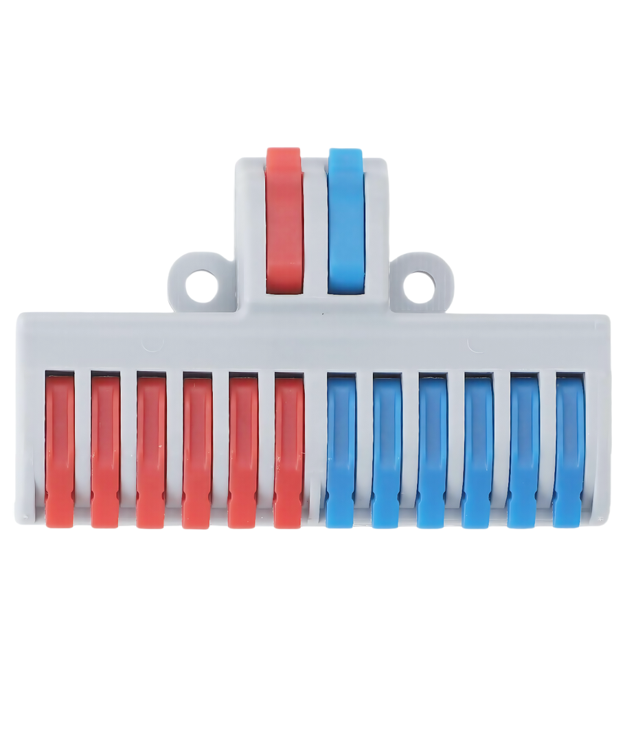 Ils disposent d'un système de connexion pratique, avec un levier orange/bleu, qui facilite l'insertion des conducteurs souples dans les trous.