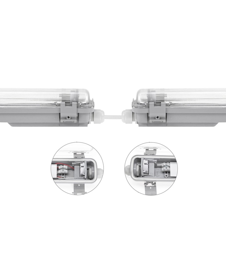 Luminaire étanche prêt pour 1 x tube LED de 120 cm.