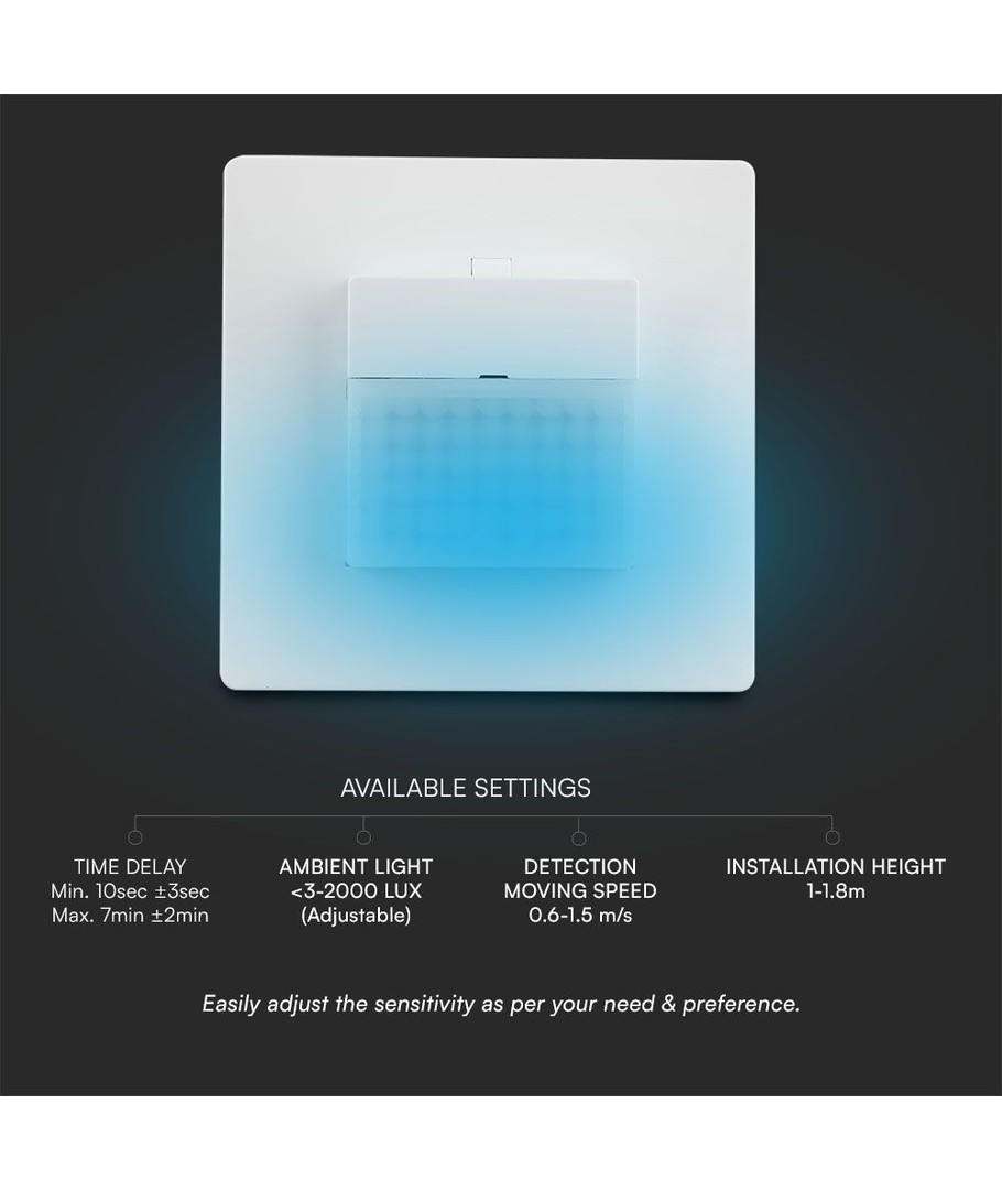 Le détecteur de mouvement mural en blanc est conçu pour une installation encastrée et offre une détection de mouvement précise grâce à la technologie infrarouge PIR, ce qui le rend idéal pour l'automatisation à domicile ou dans des locaux commerciaux.