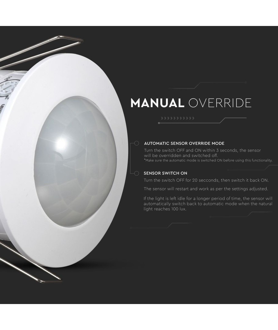Capteur de mouvement encastrable V-Tac - compatible LED, blanc, infrarouge PIR, IP20 intérieur V-TAC Développer