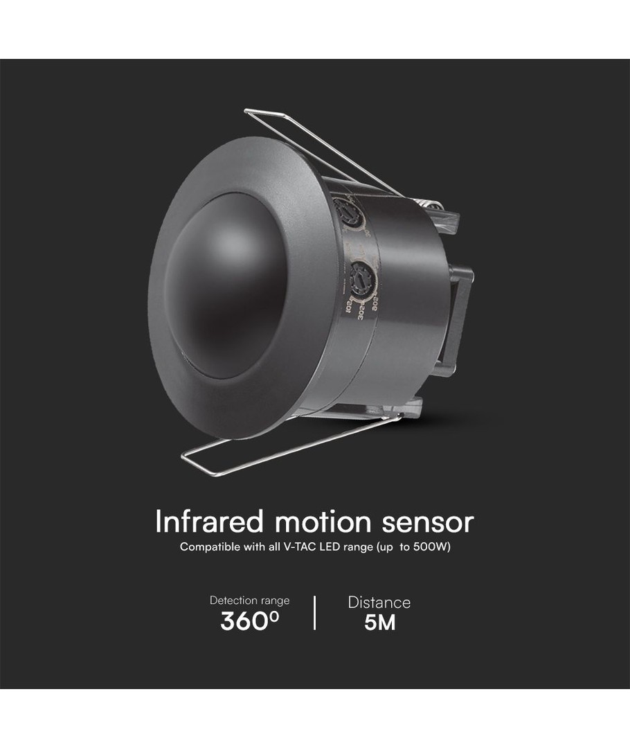 La performance du capteur est basée sur la série V-Tac Pro, garantissant une haute qualité et durabilité. Avec une charge maximale de 500W LED, ce capteur peut gérer des dispositifs d'éclairage puissants et vous offrir la flexibilité d'adapter l'éclairage à vos besoins.
