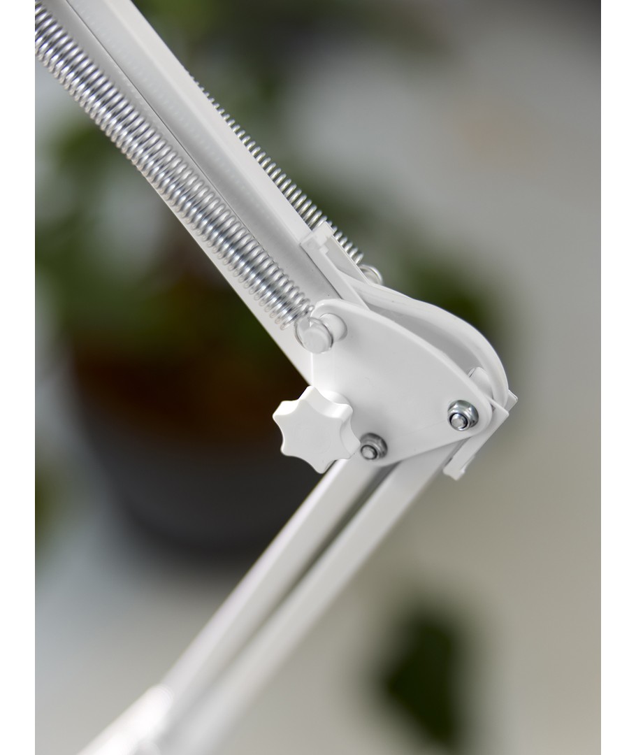 La lampe d'architecte Jensen en blanc de Nielsen Light est l'originale et classique lampe d'architecte avec 4 ressorts puissants et une tête en une seule pièce de métal. La lampe est livrée avec un serre-joint de bureau et un support mural, ce qui la rend facile à monter sur un bureau ou sur un mur.
