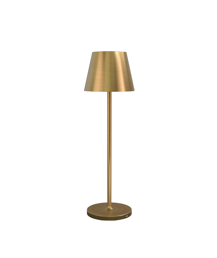 Emportez l'éclairage partout avec vous grâce à cette lampe de table rechargeable au design élégant, spécialement conçue pour une utilisation en extérieur. La lampe de table allie esthétique et fonctionnalité avec sa belle finition en laiton et sa portabilité.