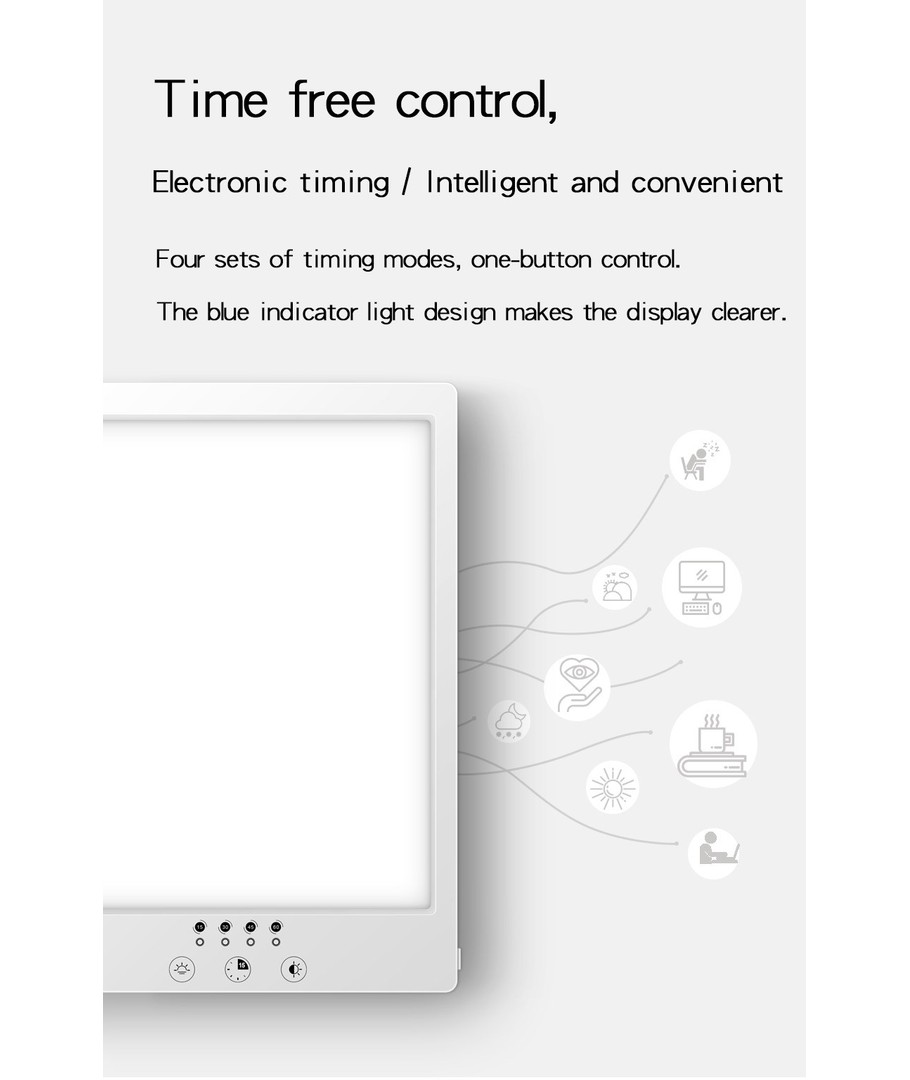 En plus de ces avantages évidents, la lampe est également facile à utiliser et à transporter, ce qui en fait une solution polyvalente pour ceux qui voyagent ou travaillent dans différents lieux. Que vous souhaitiez améliorer votre humeur, augmenter votre niveau d'énergie ou simplement disposer d'un espace de travail plus concentré, cette lampe de luminothérapie LED est le choix parfait.