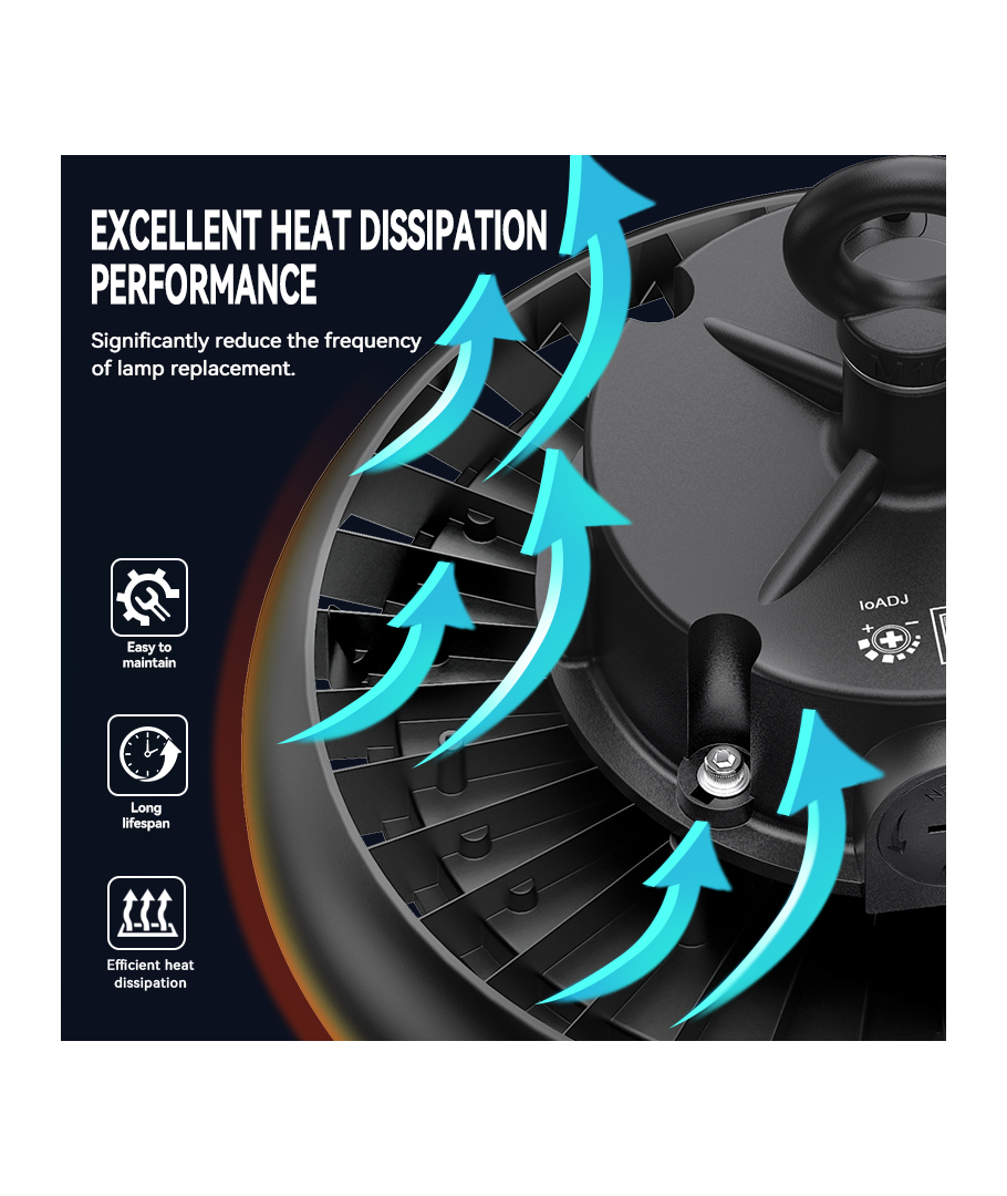 Durabilité et Garantie : Avec des LED de la plus haute qualité et une durée de vie prévue jusqu’à 50 000 heures, ce high bay garantit une diminution minimale de la luminosité. Vous pouvez compter sur sa robustesse, soutenue par une garantie de 5 ans.