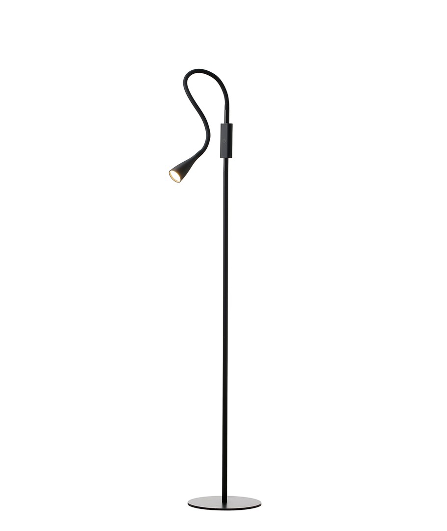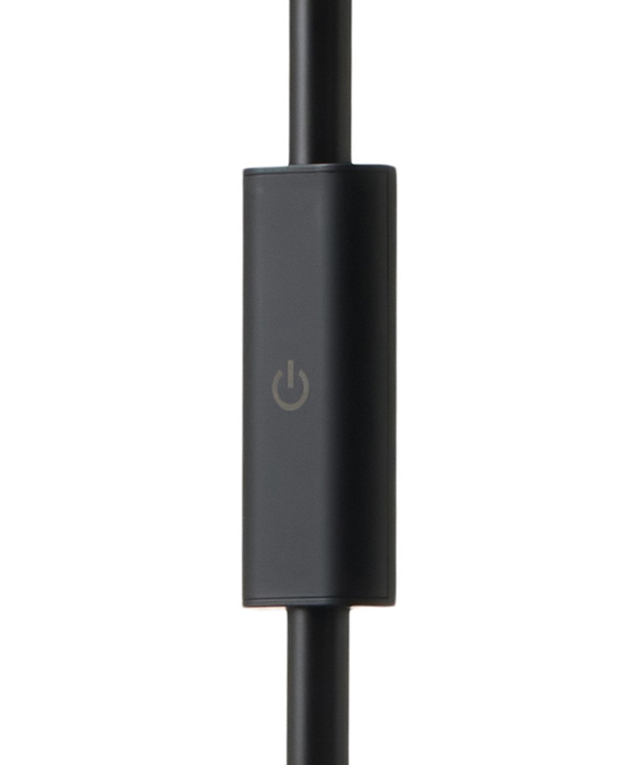 Élégant lampadaire LED noir de Nielsen Light nommé Twist, au design simple et raffiné. La lampe dispose d'un variateur Touch intégré sur la tige, ce qui la rend facile à utiliser. L'interrupteur marche/arrêt est situé sur la même commande que le variateur.