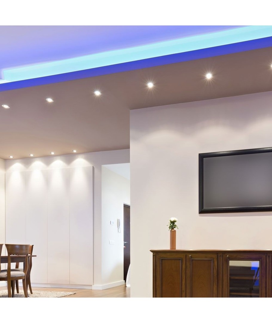 Beau spot avec une large diffusion, assurant une bonne répartition de la lumière, même dans les pièces avec un plafond bas.