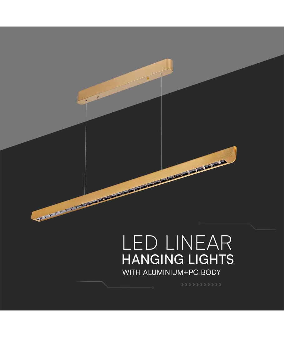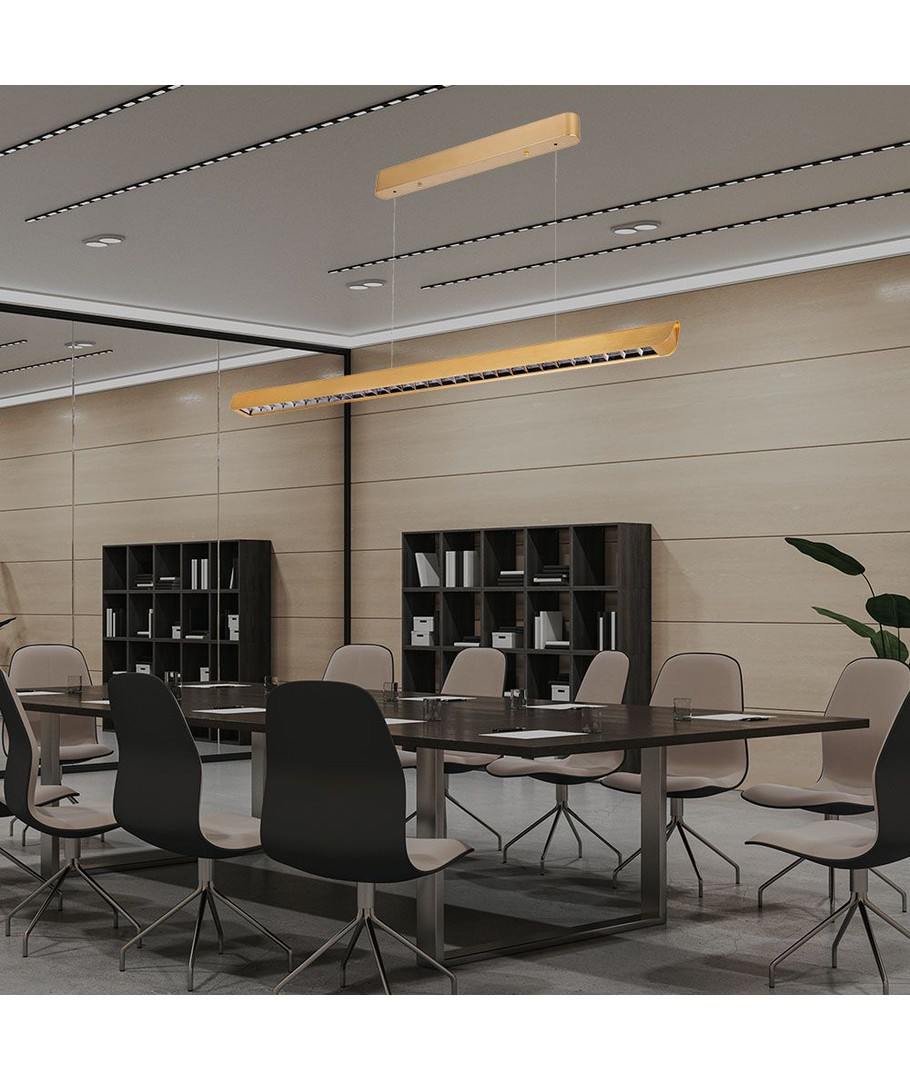 Cette suspension LED allie design élégant et éclairage efficace avec une belle finition dorée. Parfaite pour les maisons modernes ou les bureaux où style et fonctionnalité vont de pair.