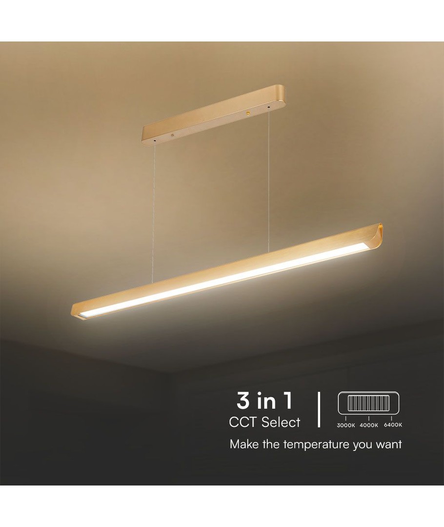 Le design linéaire fait de cette lampe un ajout parfait aux intérieurs modernes, et sa finition élégante dorée ajoute une touche luxueuse. Elle est disponible aux dimensions 1227 x 50 x 60 mm, ce qui la rend adaptée à différentes tailles de pièces.