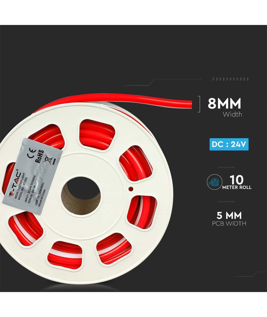 Découvrez le polyvalent et durable Neon Flex 8W/m 24V en une couleur rouge saisissante, livré en un rouleau pratique de 10 mètres. Avec une puissance de 8W et une luminosité de 320 lumens, ce neon flex est un excellent choix pour des projets intérieurs comme extérieurs.