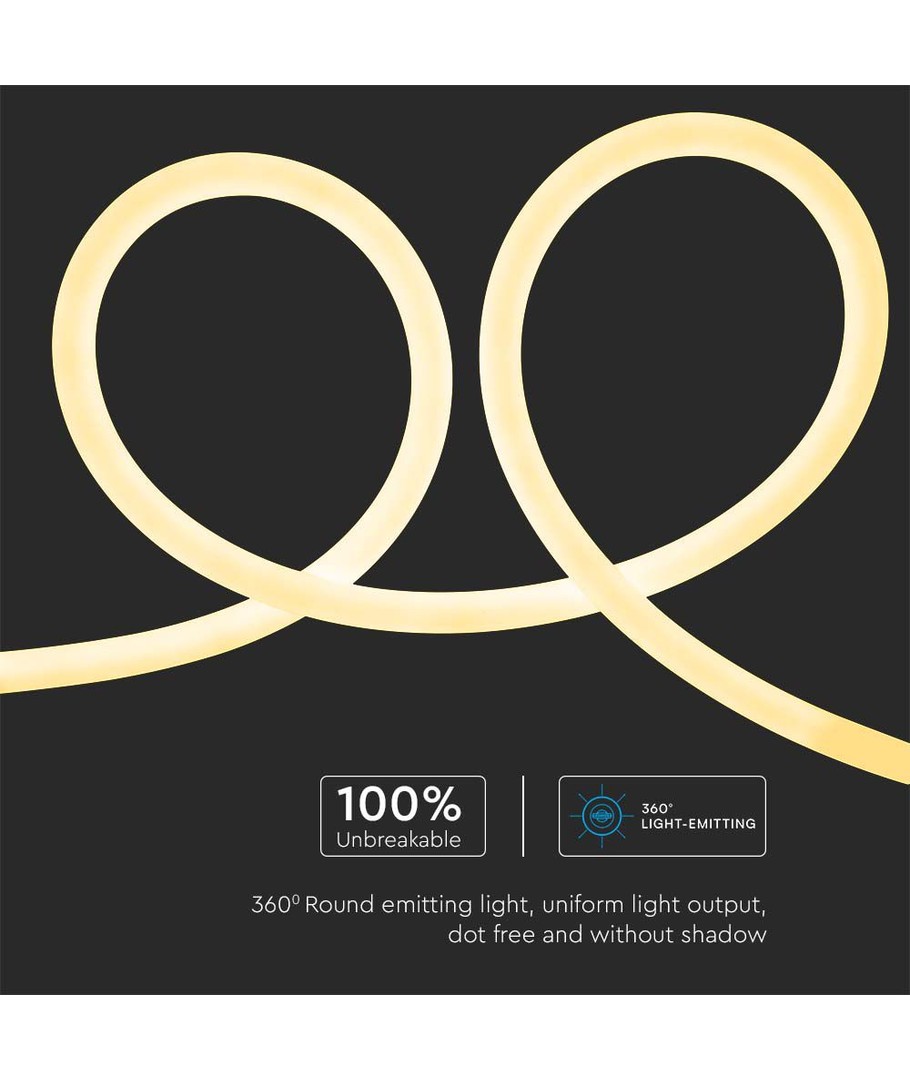 10m 12W/m Neon Flex LED strip, 25mm - 24V, 360 degrés, IP20, SMD 2835 V-TAC Développer