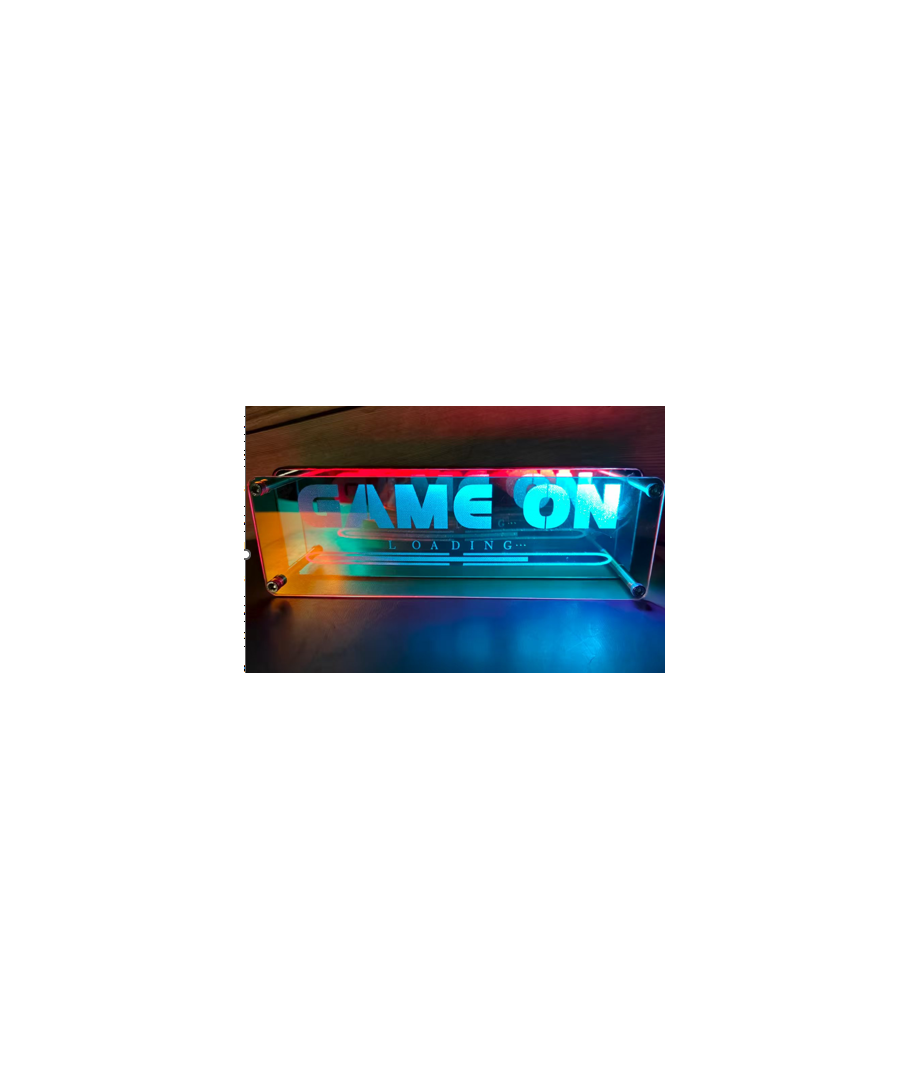 Panneau néon RGB fantastique avec effet miroir infini, répétant "Game On" à l'infini ! Le panneau dispose de nombreux modes d'effets RGB impressionnants, que vous pouvez contrôler directement dans l'application. Connectez-vous facilement via un port USB - et vous êtes prêt à partir !