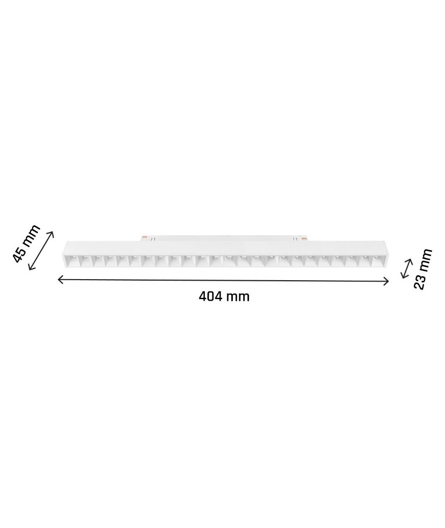 Avec une puissance de 22W, une connexion à une alimentation 48V et des dimensions de 23 x 404 x 42 mm, ce luminaire s'intègre parfaitement dans les environnements domestiques et professionnels.