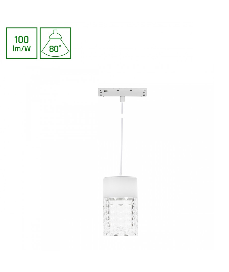 La source lumineuse intégrée fournie a une puissance de 7W et se connecte à une alimentation 48V. Ce luminaire offre une intensité lumineuse de 550 lumens et un large angle de diffusion de 80 degrés, assurant une répartition homogène de la lumière dans la pièce.