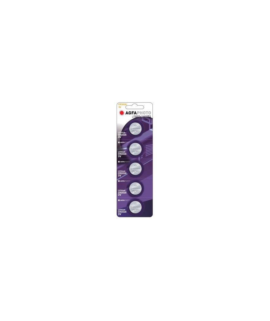 5 pcs de pile bouton CR1616 de AgfaPhoto.Utilisé notamment pour les jouets, calculatrices, clés de voiture ou télécommandes.