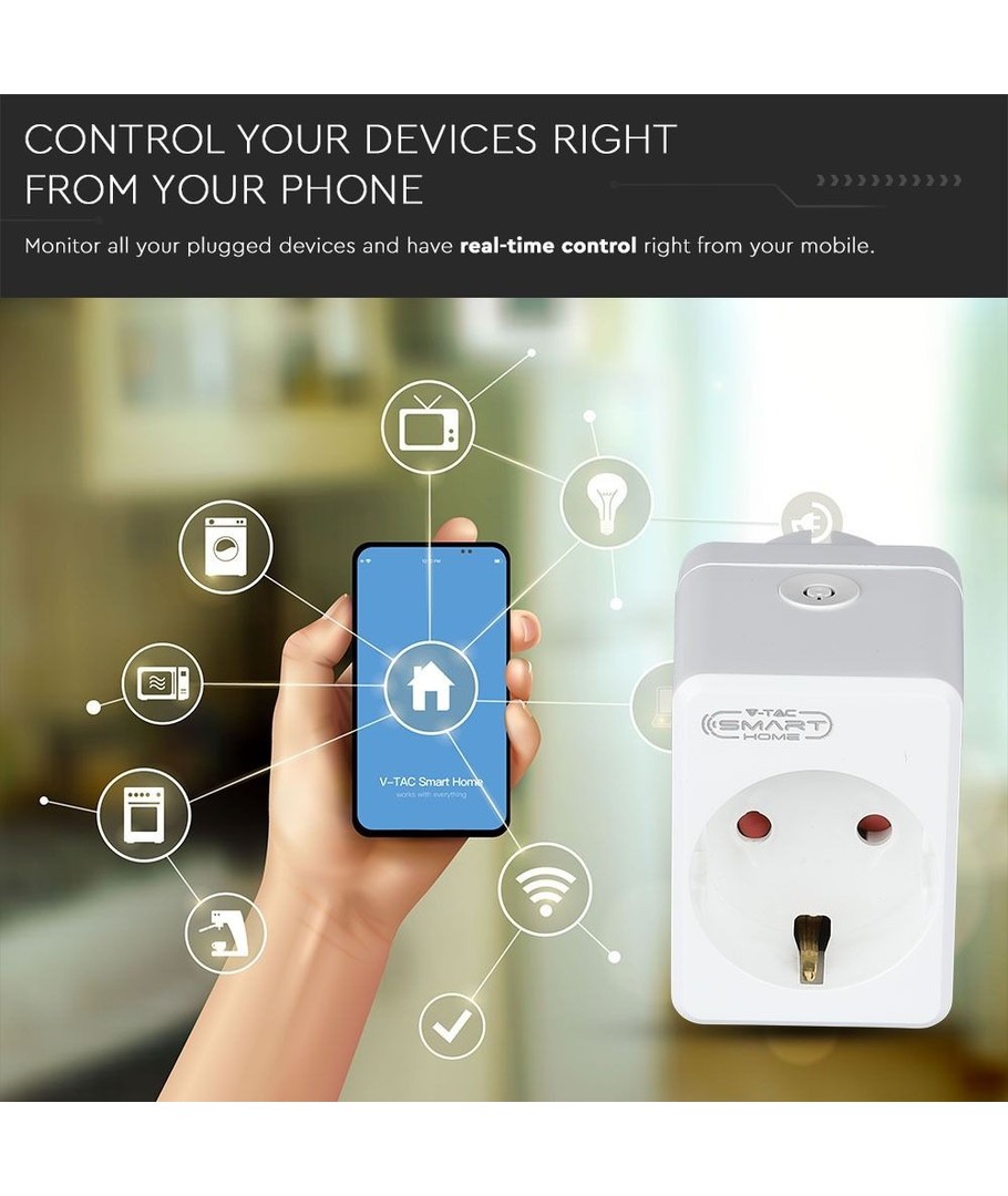 Avec cette prise Smart Home, vous pouvez facilement transformer une prise ordinaire en une prise Smart Home, qui peut être contrôlée via une application sur votre smartphone ou commandée vocalement via Google Home et Alexa.