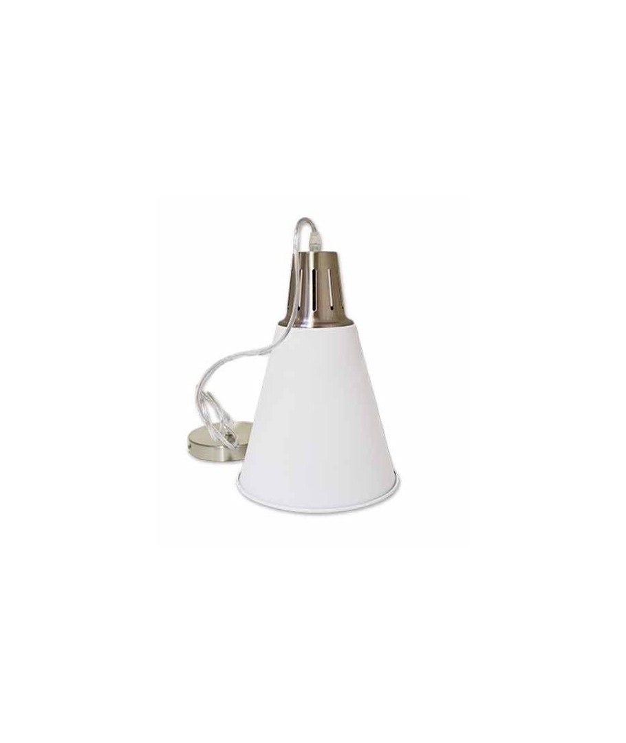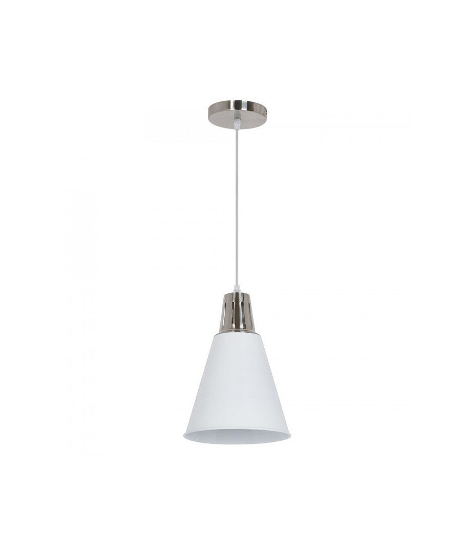 Suspension élégante et simple de couleur blanche avec du chrome sur le dessus.