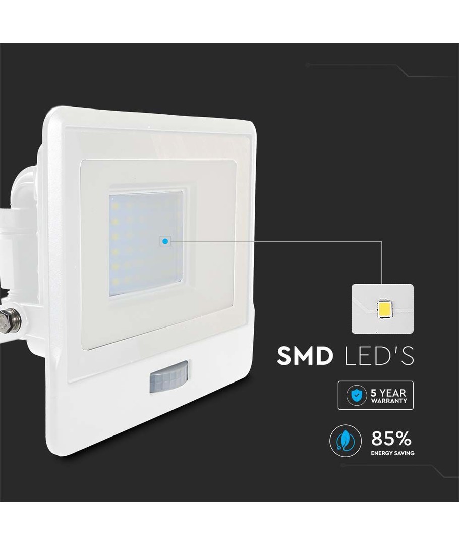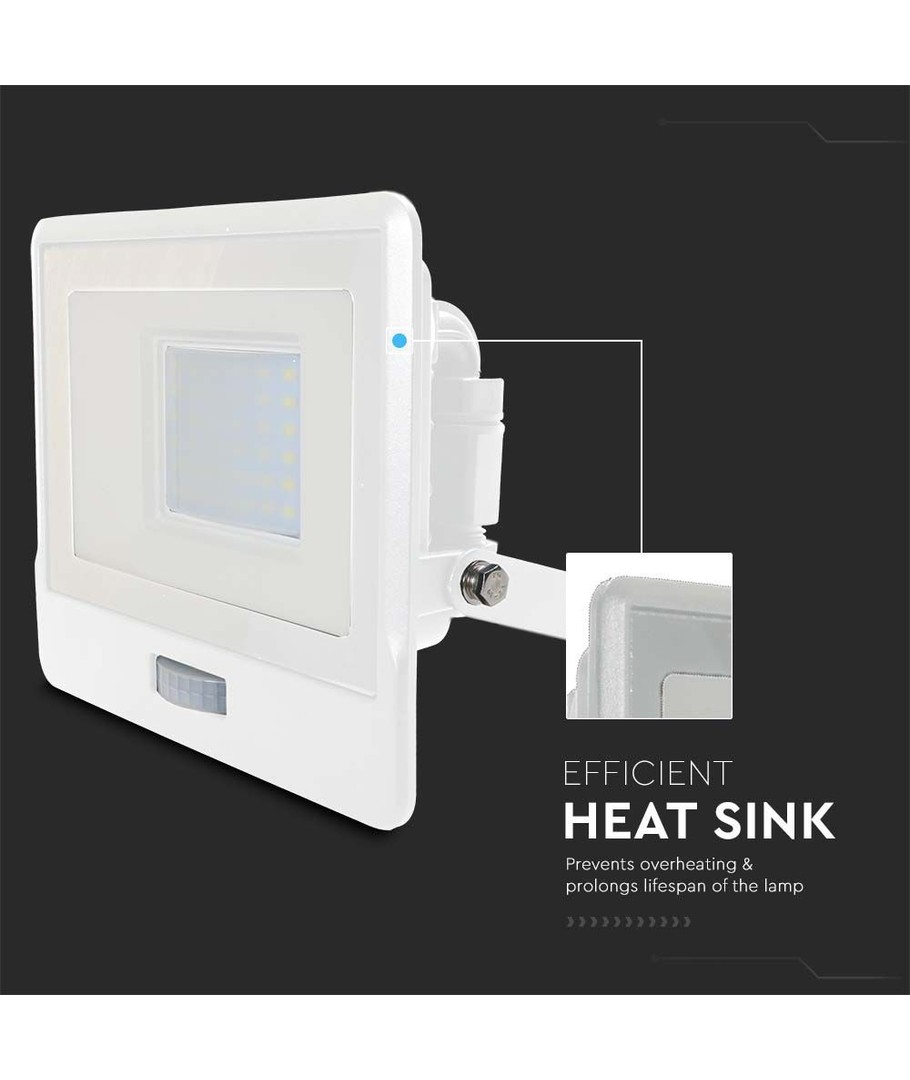Projecteur robuste avec capteur PIR intégré.