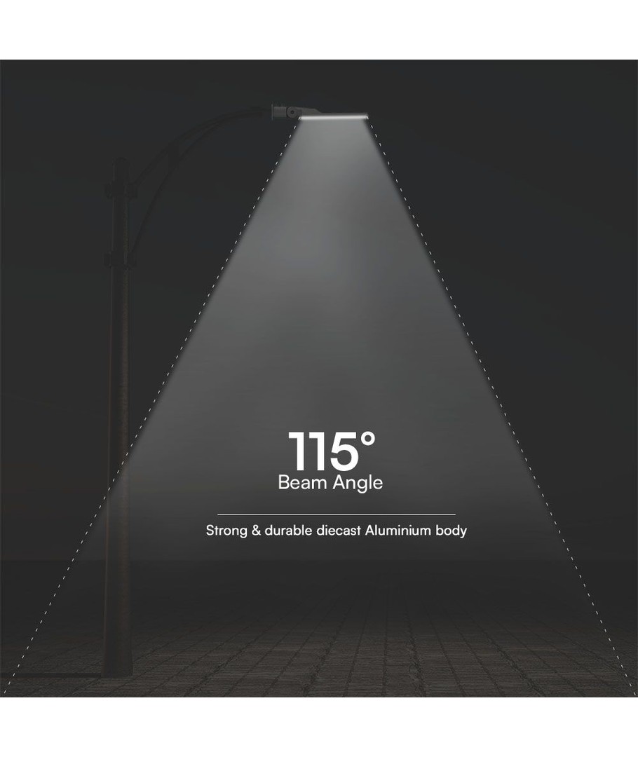 Ce projecteur LED 150W est conçu pour fournir un éclairage puissant et homogène aux espaces extérieurs. Avec un impressionnant flux lumineux de 20250 lumens et une large diffusion de 115 degrés, ce lampadaire assure une répartition uniforme de la lumière sur de grandes surfaces. Cela en fait un choix idéal pour un usage public et privé.