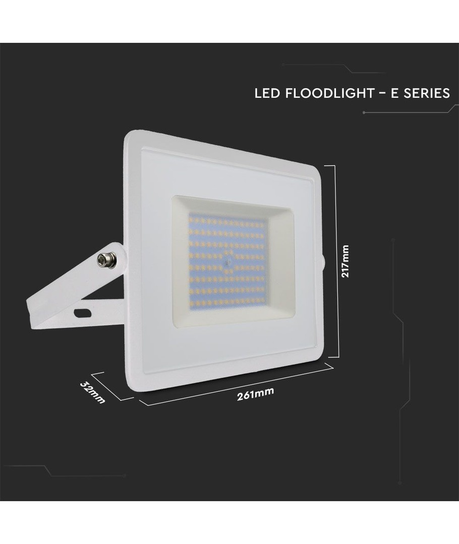 Son design robuste avec un boîtier blanc et une classification IP65 signifie que le projecteur peut résister à des conditions difficiles et peut donc être installé en extérieur, où il supporte les éclaboussures d’eau et la pluie sans souci.