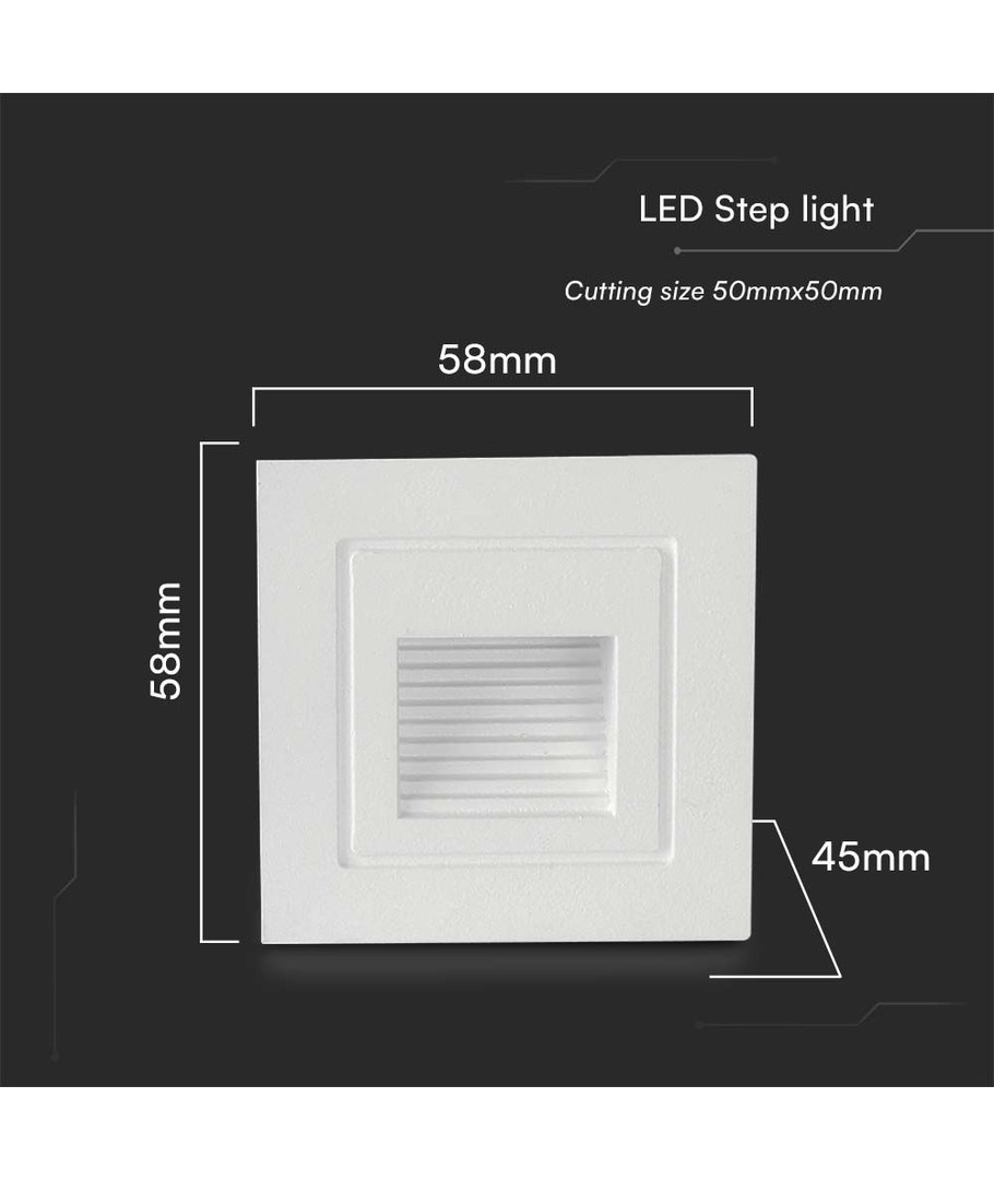 Avec des dimensions compactes de 58 x 45 x 58 mm et une classification IP65, ce luminaire pour marches est conçu pour résister aux conditions extérieures exigeantes. Il est étanche et peut supporter les éclaboussures d'eau et la pluie, ce qui le rend idéal pour une installation dans les jardins, sur les terrasses ou le long des allées.