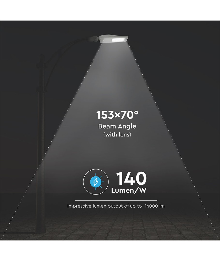 Améliorez vos installations d'éclairage extérieur avec ce lampadaire LED 100W qui offre 14000 lumens. La combinaison de la puce LED Samsung et d'un driver professionnel garantit une luminosité de 140lm/W, idéale pour un large éventail d'applications d'éclairage.