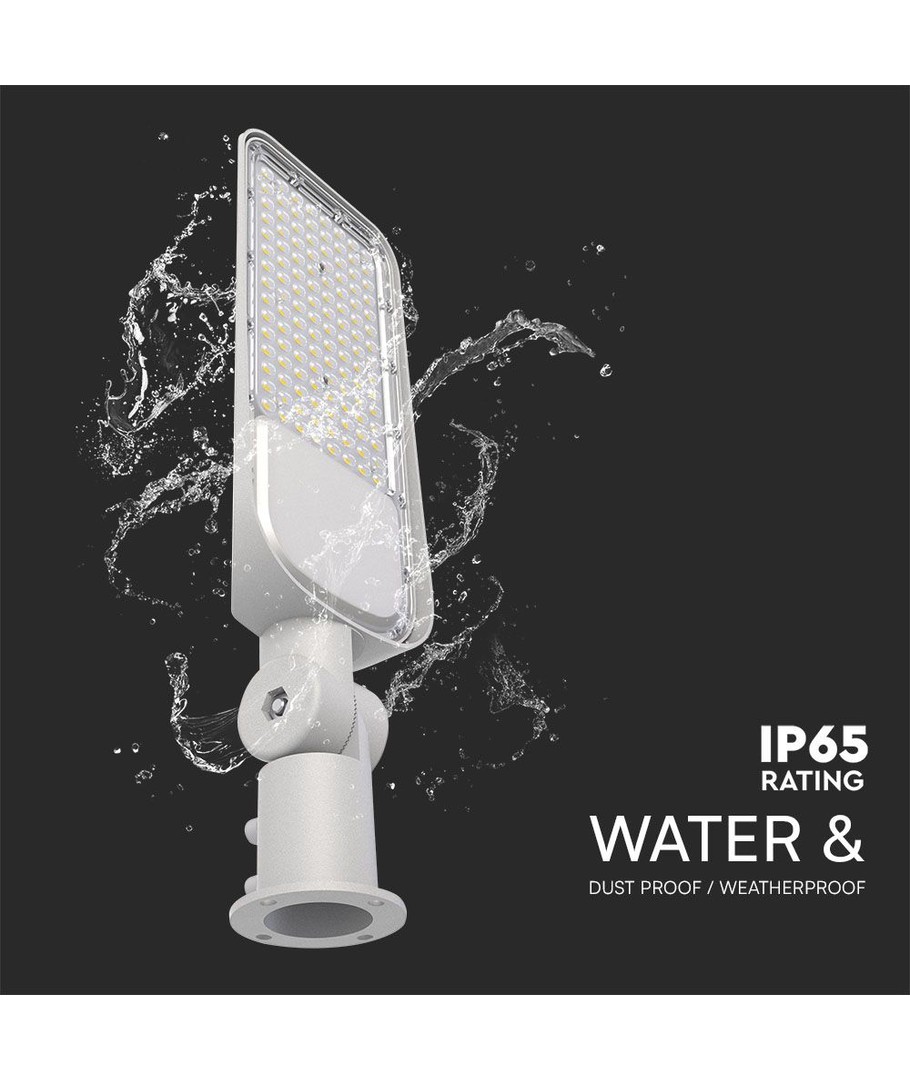 Avec une luminosité de 13 500 lumens et un large angle de diffusion de 115 degrés, cette lampe de rue assure une répartition homogène de la lumière, ce qui la rend idéale pour les grandes surfaces.
