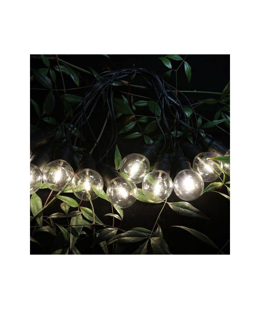 La guirlande lumineuse est le choix parfait pour éclairer votre terrasse ou votre véranda. Cette guirlande est conçue avec 10 ampoules blanc chaud qui créent une atmosphère chaleureuse. Avec une longueur de 12 mètres, vous disposez de suffisamment de lumière pour couvrir votre espace extérieur.