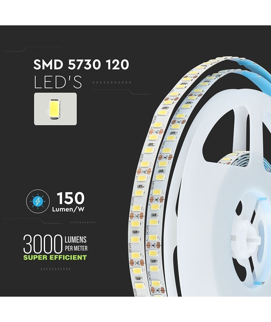 Pour ceux qui recherchent une solution d'éclairage supérieure, la bande LED V-Tac 18W/m offre une combinaison fantastique de puissance lumineuse et de rendu des couleurs. Avec une luminosité remarquable de 2000 lumens par mètre, cette bande LED assure une diffusion lumineuse brillante et uniforme grâce à son angle de diffusion de 120 degrés.