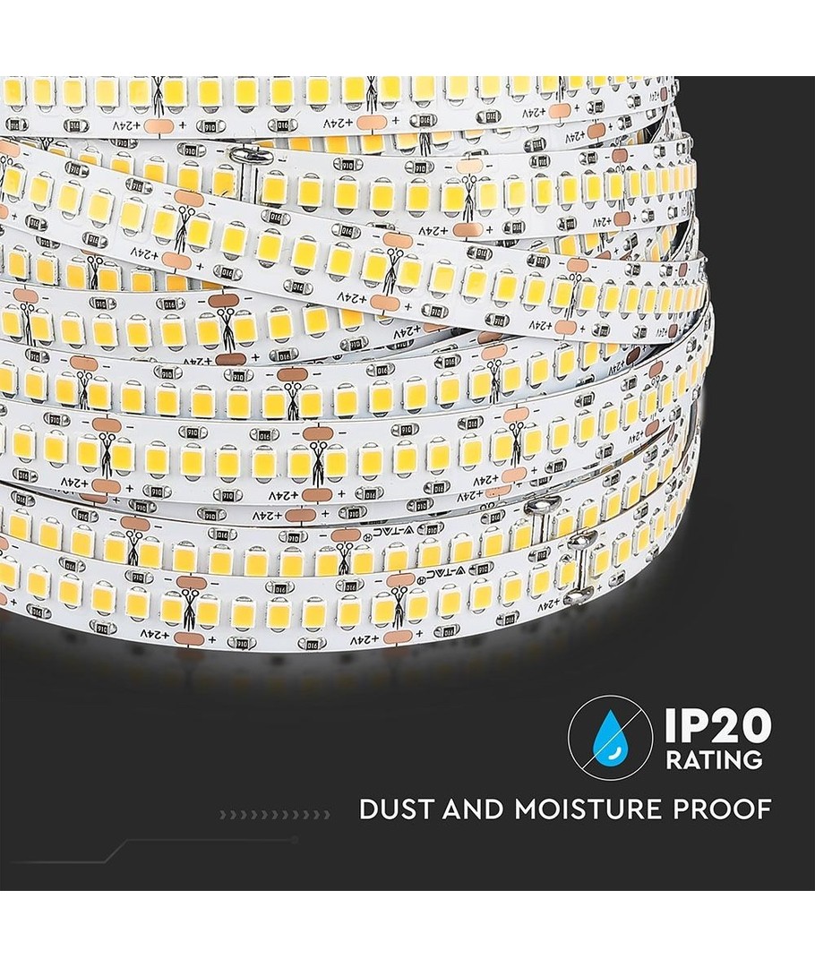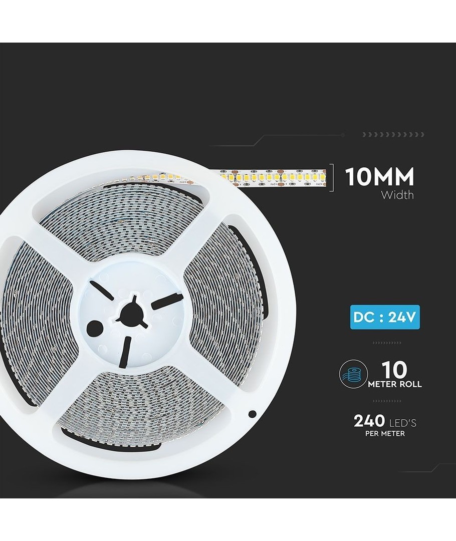 La bande LED mesure 10 mm et possède une classification IP20, ce qui signifie qu’elle est conçue pour une utilisation intérieure sans exposition directe à l’eau.