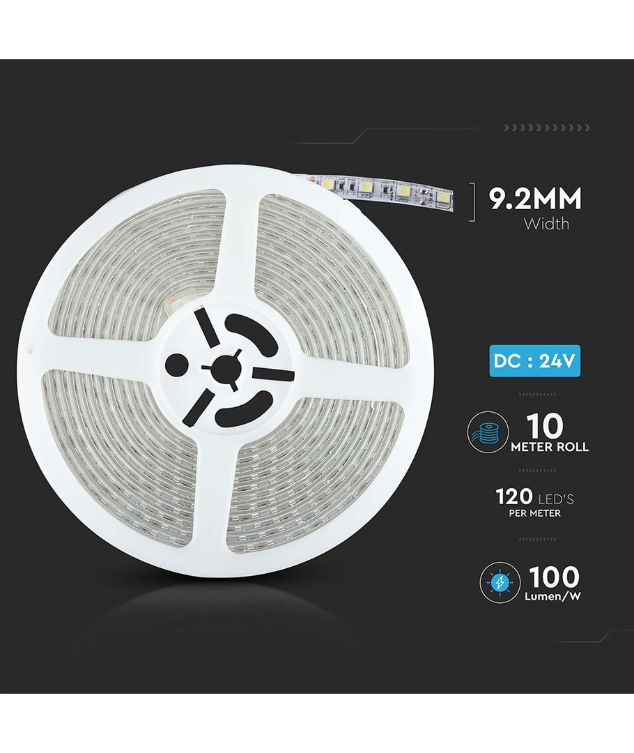 La bande mesure 9,2 mm de largeur, ce qui la rend discrète et facilement intégrable dans différents styles d’aménagement. Elle est alimentée par une alimentation 24V, assurant un éclairage stable et régulier.