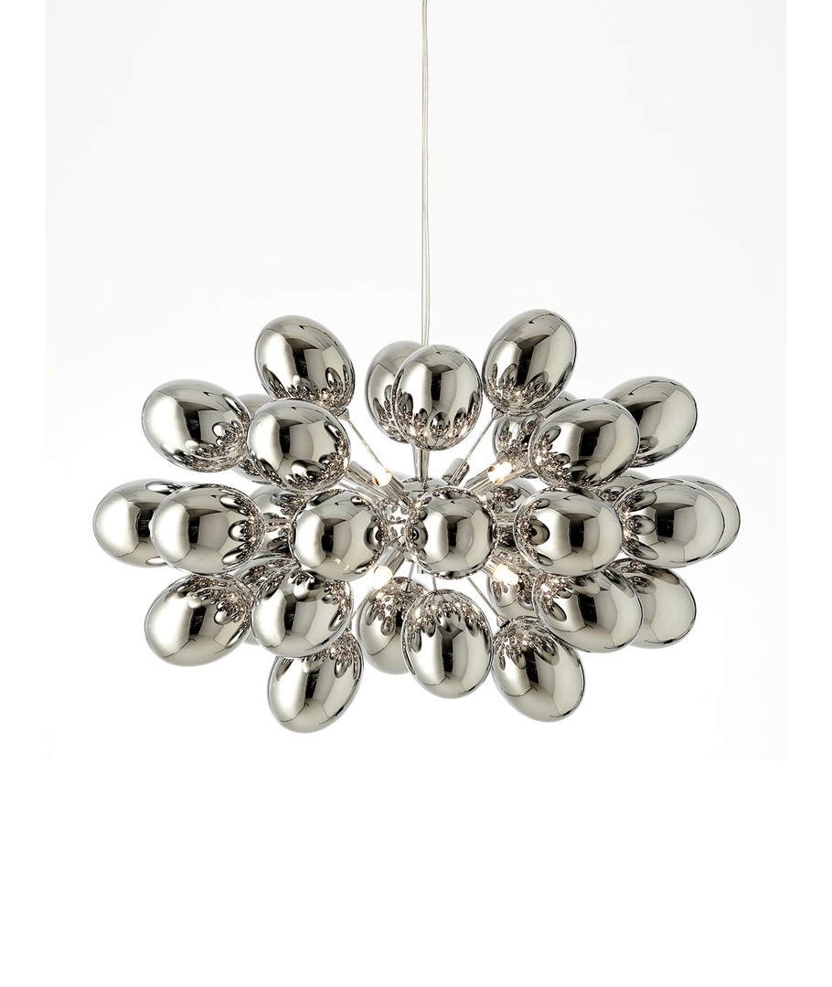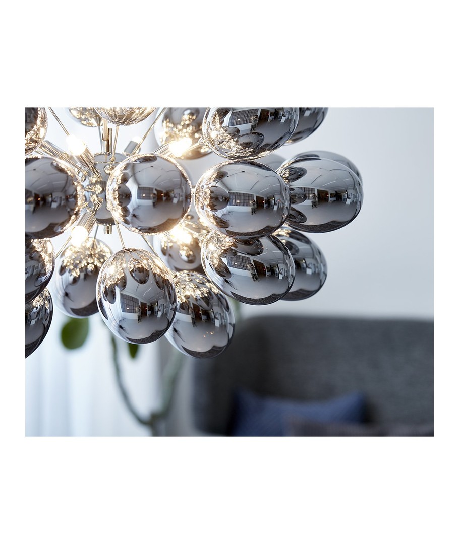 Élégante suspension avec 32 magnifiques boules de verre argentées de Nielsen Light. Superbe au-dessus de la table à manger ou dans un coin. La lampe mesure Ø : 74 cm et une hauteur de 50 cm (hauteur totale avec câble 402 cm). La lampe est livrée avec 8 douilles G9. Max 30W.