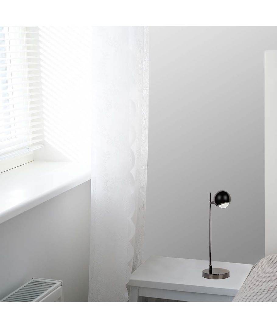 La lampe de table a une diffusion lumineuse de 60 degrés, garantissant une répartition uniforme et efficace de la lumière dans la pièce. Avec son corps noir, la lampe s'intègre parfaitement dans un décor moderne ou classique.