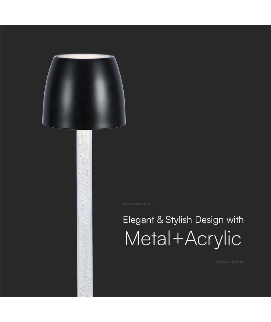 Apportez une touche moderne à votre pièce avec cette élégante lampe de table LED 3W. Elle est conçue avec une tige transparente et un corps noir, s'intégrant parfaitement à tout intérieur.