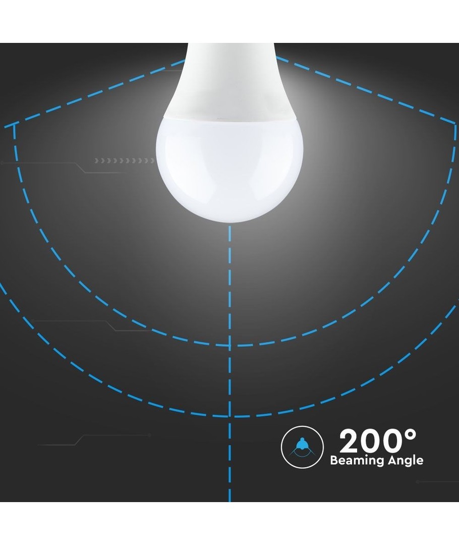 L'ampoule a une luminosité de 806 lumens avec un large angle de diffusion de 200 degrés, assurant une répartition uniforme et agréable de la lumière. Une haute qualité lumineuse avec un indice RA de 80-85 garantit une reproduction naturelle et authentique des couleurs, la rendant adaptée à la plupart des besoins.