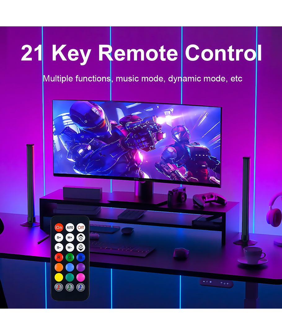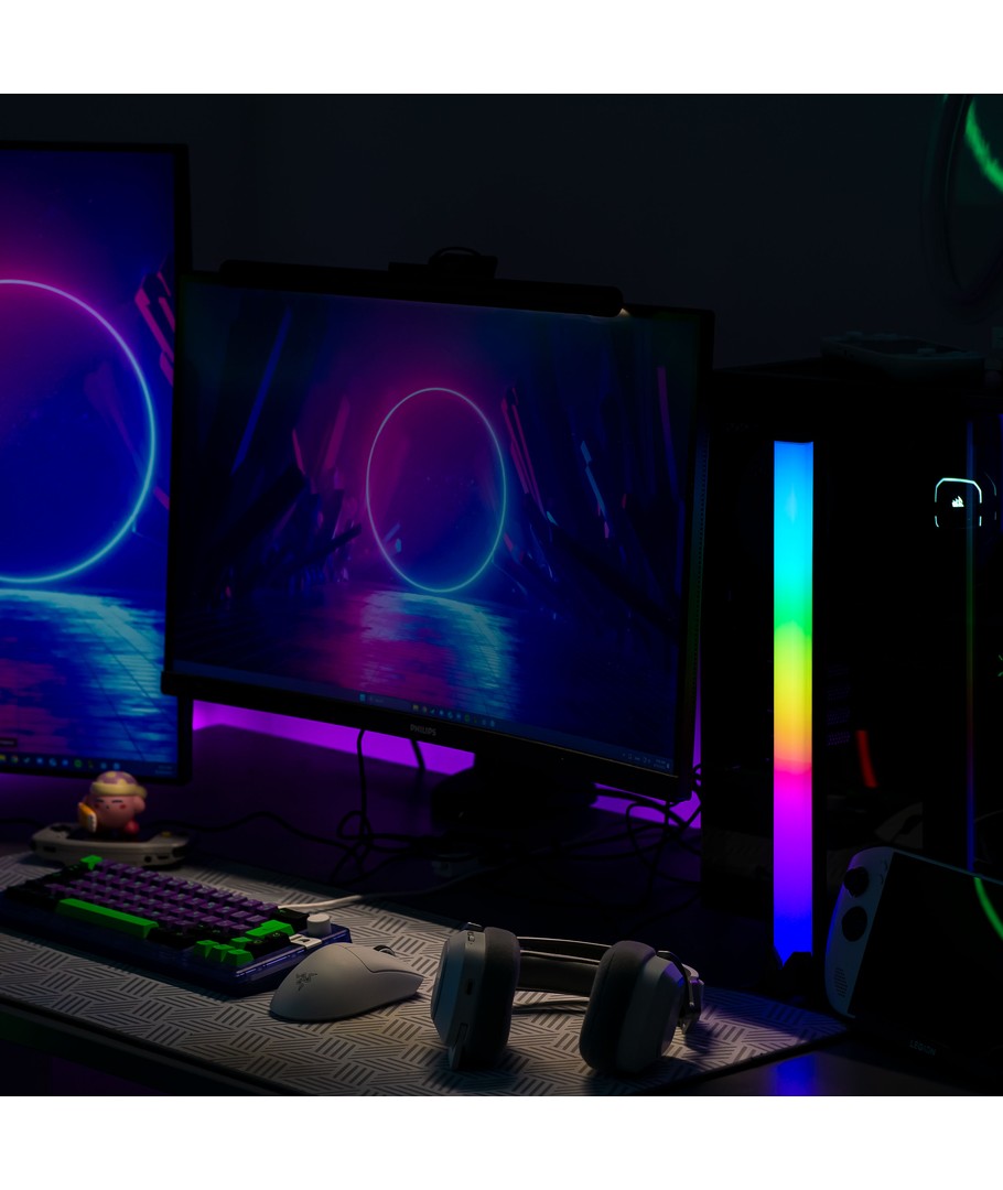Découvrez l'atmosphère de jeu ultime avec 2 barres lumineuses ambiantes RGBIC qui illuminent votre monde ! L'éclairage parfait pour votre bureau.