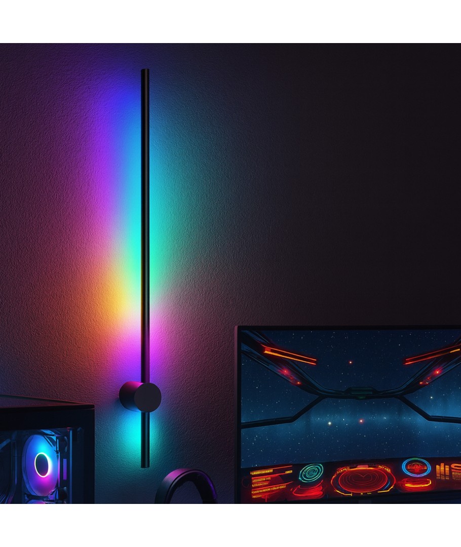 Cette lampe murale RGBIC de 80 cm est conçue pour élever votre configuration de jeu ou de streaming à un niveau supérieur. Avec des couleurs dynamiques, des effets réactifs et un contrôle total via l'application et la télécommande, vous obtenez une lampe qui correspond à votre style – que vous jouiez, regardiez des films ou montriez votre configuration.