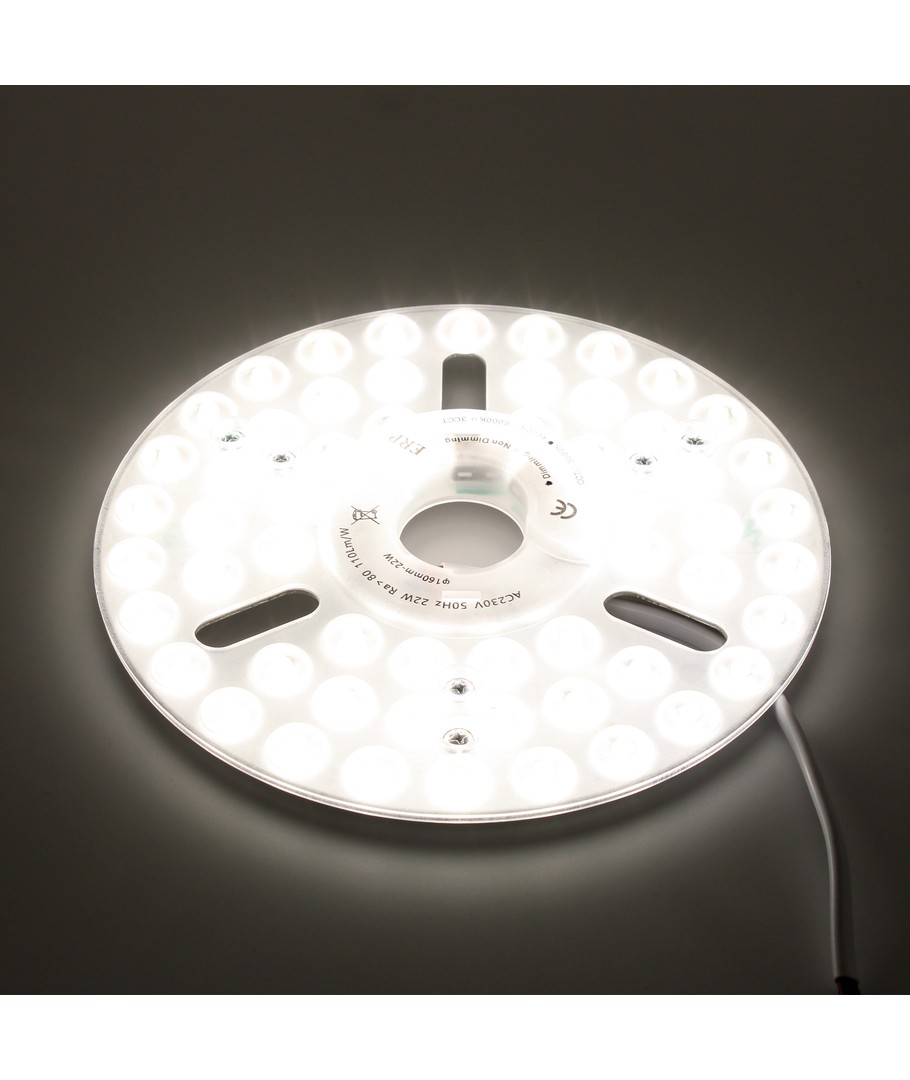 Le module LED se connecte facilement à une alimentation 230V, et ses dimensions compactes de 25 x Ø230 mm facilitent son installation dans les luminaires existants. Il s'adapte parfaitement aux espaces où l'économie d'espace et un éclairage efficace sont prioritaires.