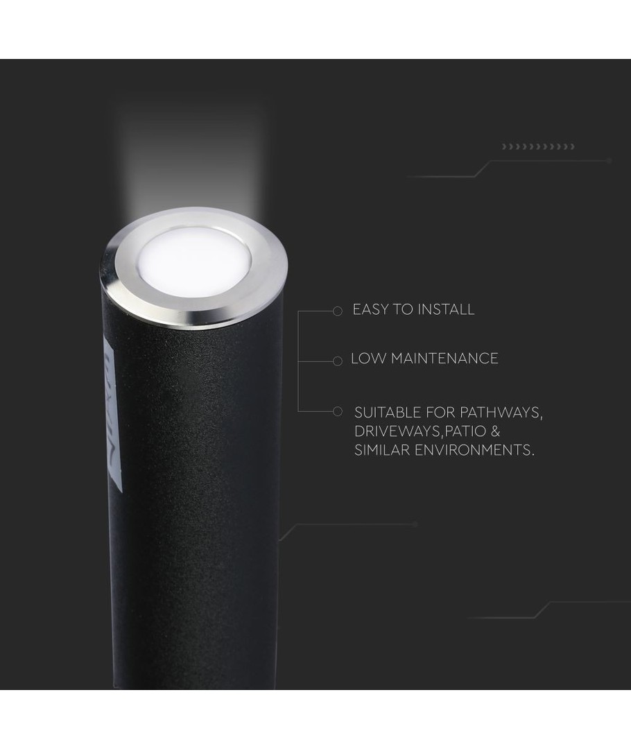 Le spot encastrable V-Tac mesure 82 x Ø26 mm, ce qui le rend compact et facile à intégrer dans différents types d’installations. Il est conçu pour résister aux conditions météorologiques grâce à son indice d’étanchéité IP67. Bien qu’il ne soit pas destiné à une immersion continue, il supporte sans problème la pluie et les environnements humides, assurant une longue durée de vie et des performances durables.