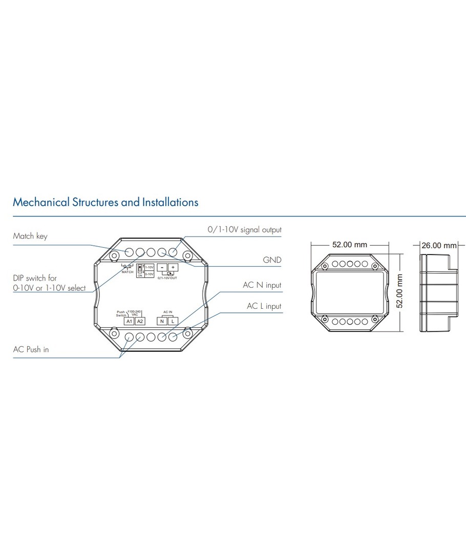 Spécifications TechniquesLa taille discrète du variateur le rend idéal pour une installation encastrée, où il peut être caché discrètement. Il est parfait pour ceux qui souhaitent garder tout « sous le radar » sans compromettre la fonctionnalité ni la technologie avancée.