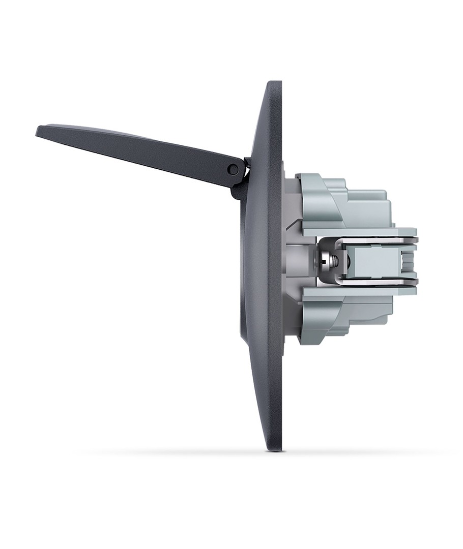 Prise Schuko - simple, avec couvercle, noire, conçue pour offrir une combinaison de sécurité et de style.