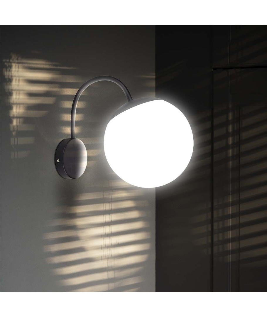 La finition noir mat apporte une touche moderne qui met en valeur tout intérieur, tandis que la boule en plastique opale diffuse une lumière douce et homogène. La combinaison de ces éléments assure une ambiance lumineuse harmonieuse et agréable.